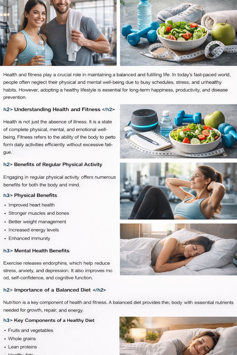 Health and fitness play a vital role in maintaining a balanced and fulfilling life. In today’s fast-paced world, people often neglect their physical and mental well-being due to work pressure, st...